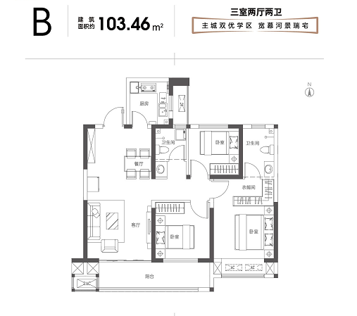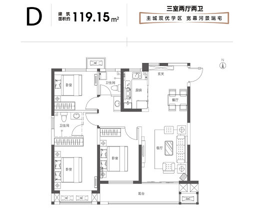 ③ 戶戶贈送:三/四開間朝南,連通式陽臺50%贈送;